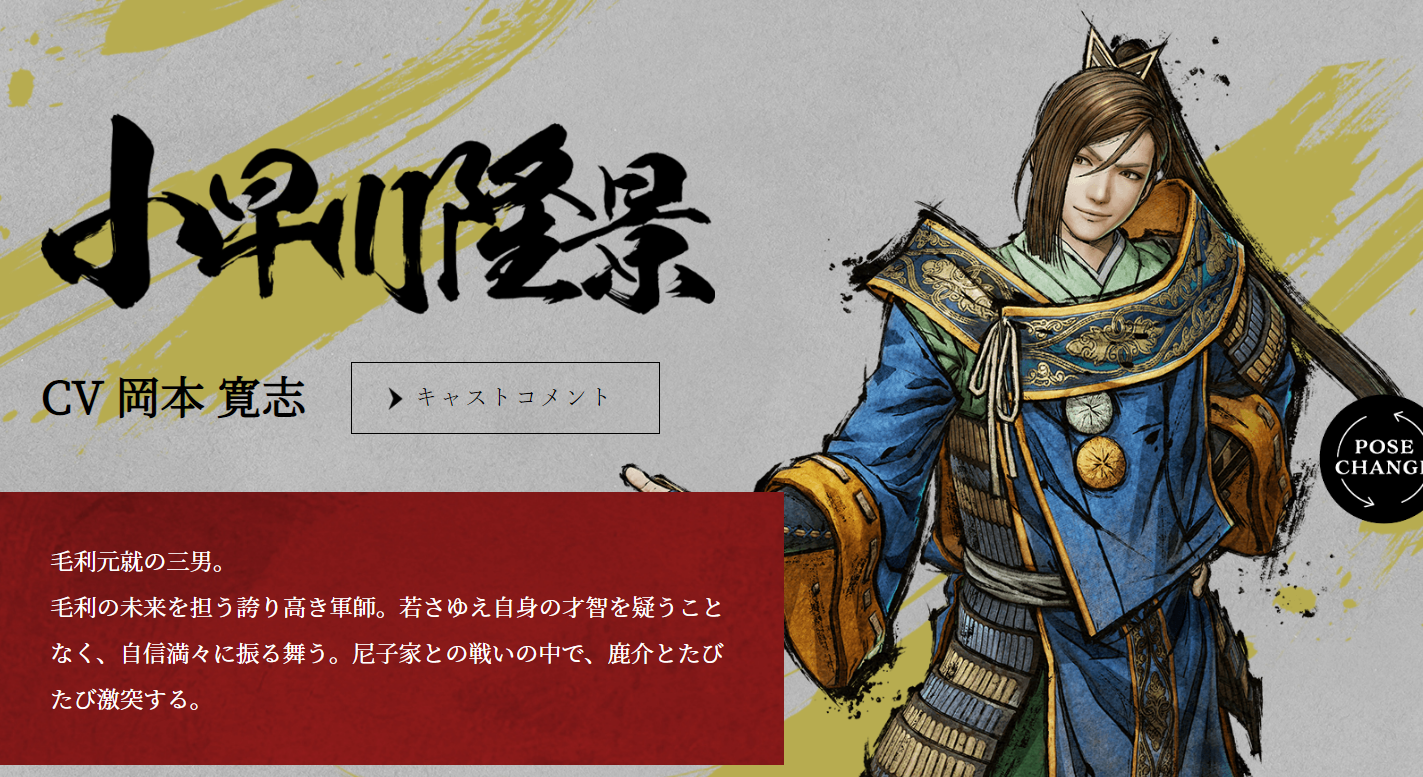 小早川隆景(CV:岡本寛志)得意武器:刀