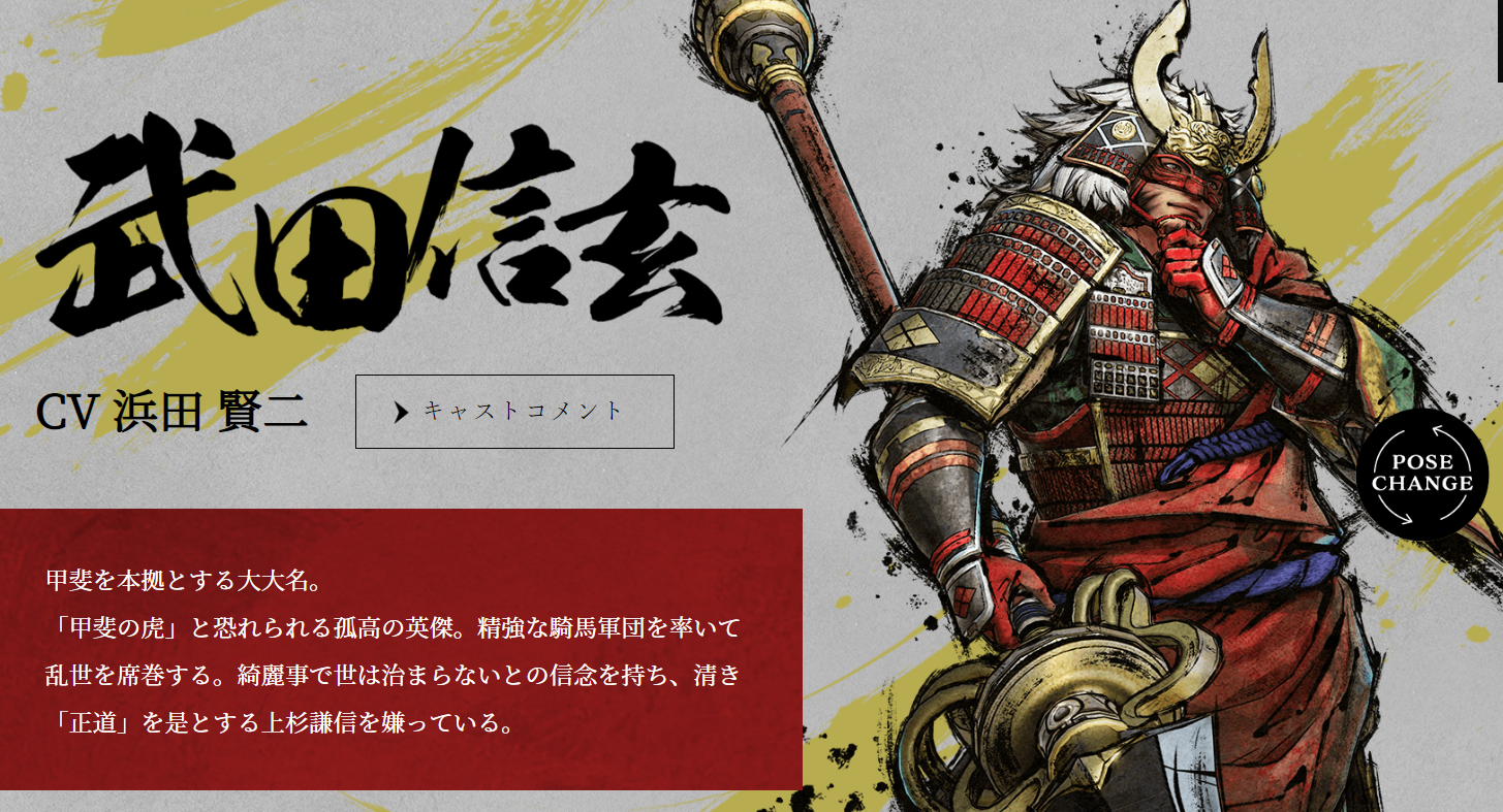 武田信玄(CV:浜田賢二)得意武器:大身槍